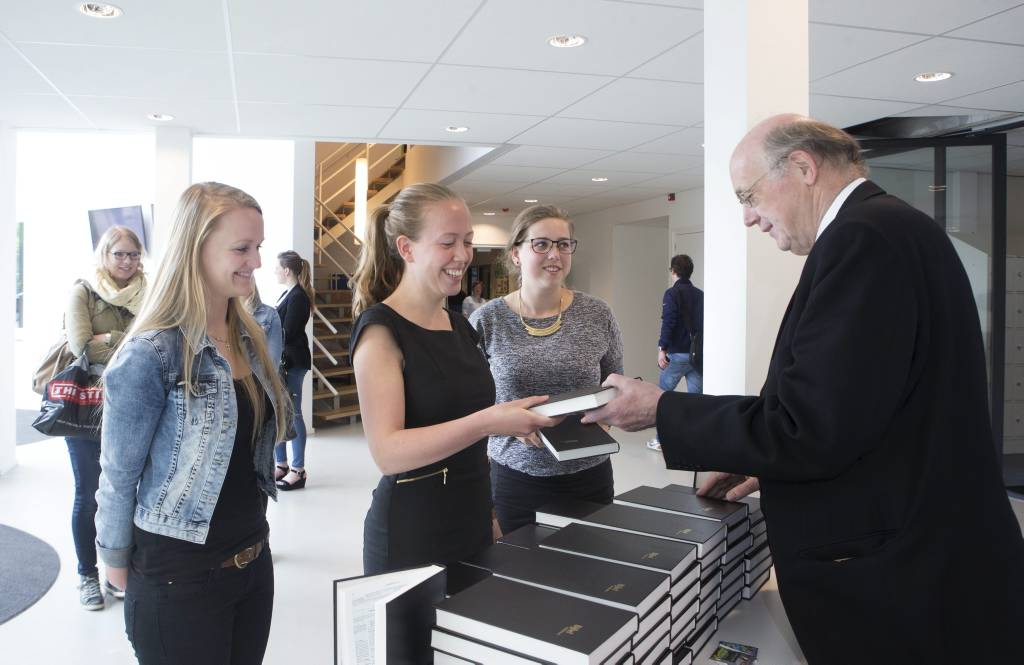 Het is druk tijdens de leswisseling bij de hoofdingang van de Christelijke Hogeschool Ede (CHE). Studenten lopen in groepjes langs de stand van de GBS en blijven verrast staan als ze zien dat ze een gratis Bijbel kunnen meenemen. Sommige pakken een Bijbel met kanttekeningen mee zonder iets te zeggen, anderen vragen of ze die zomaar mogen meenemen, of dat ze er ook een mogen meenemen voor hun vriend of vriendin.