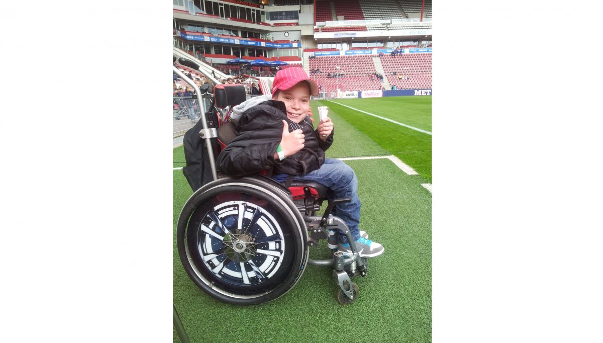 Twee jaar geleden schafte het gezin speciaal voor Jacco de rolstoelbus aan. Jacco werd geboren met een open ruggetje en is daardoor vanaf zijn middel verlamd. Het vervoer naar school wordt geregeld via de gemeente. „Maar verder is hij voor al het vervoer aangewezen op onze bus, die is voorzien van een elektrische lift. We kunnen hem zo binnen rijden en de rolstoel vastzetten.”