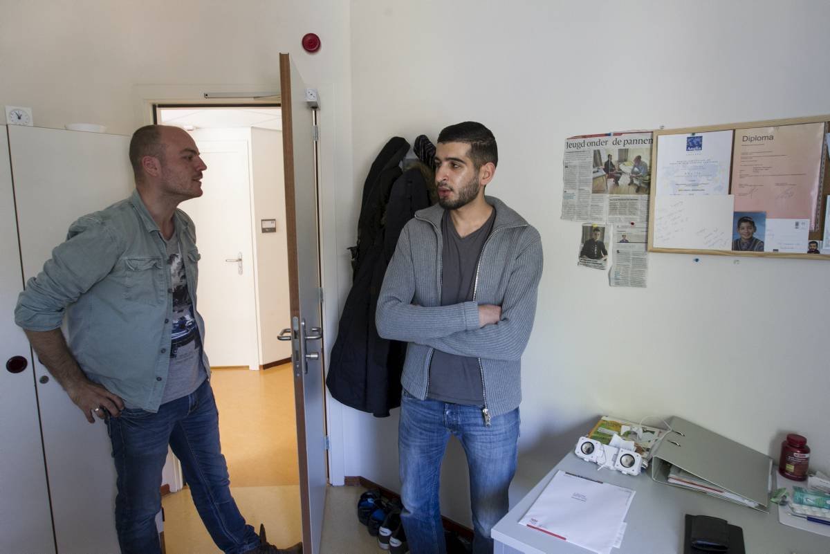 Trots laat Soelimen (21) zijn kamer zien in de Goudse Jongeren Opvang (GJO), die in december de deuren opende in een pand van het Leger des Heils. Behalve in zijn eigen ruimte –bed, kast, bureau– kan hij terecht in een ruime gemeenschappelijke woonkamer.