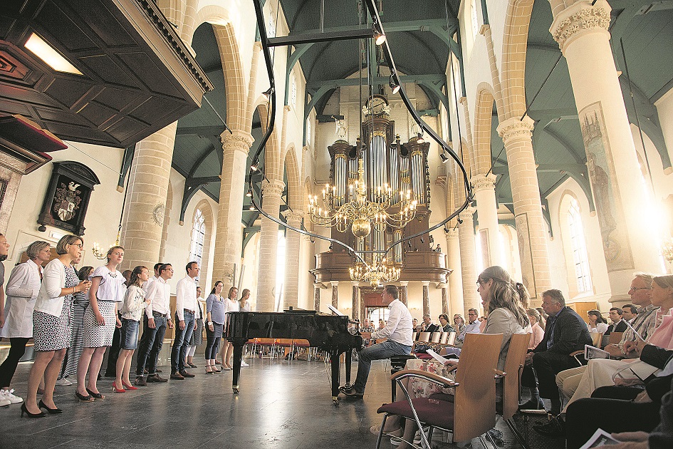 Het pinksterappel trok zo’n 300 bezoekers. Jongerenkoor Esperanza uit Utrecht verzorgde de muzikale omlijsting.