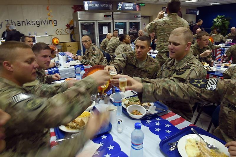 Voor de Amerikaanse soldaten is in totaal 1000 kilo kalkoen, 150 kilo cranberrysaus en 500 hartige taarten ingevlogen. Militairen in Afghanistan, Irak, Koeweit en andere landen genoten van de luxe maaltijd.