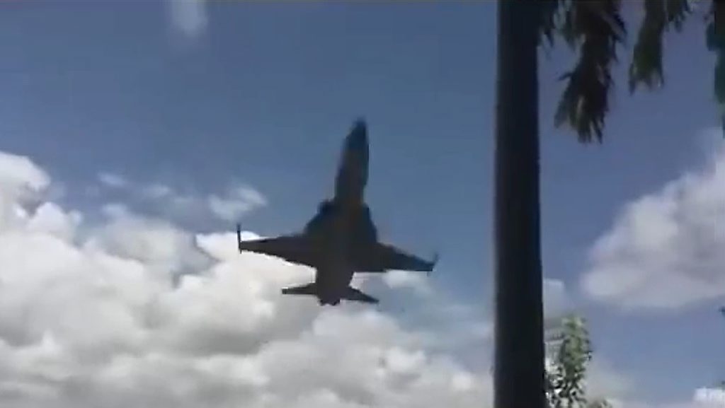 Straaljagerpiloten voerden onlangs een wel erg lage flypast uit boven een militaire basis bij de Keniaanse stad Mombassa. Grondpersoneel legde het waagstuk vast.