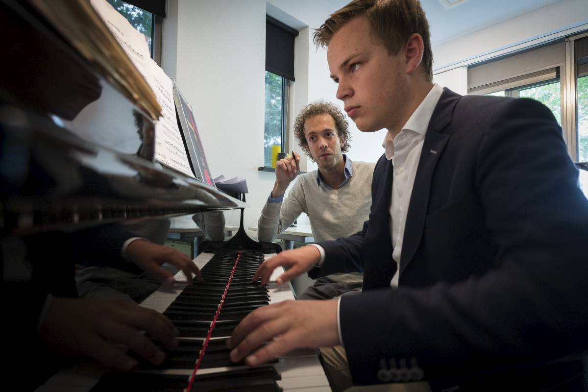 Laurènce Fierens (18) uit Hendrik-Ido-Ambacht studeert politicologie in Leiden. Hij heeft sinds tien jaar pianoles, het laatste jaar bij Lennart Morée. „Ik leer veel van hem op het gebied van interpretatie en techniek.”