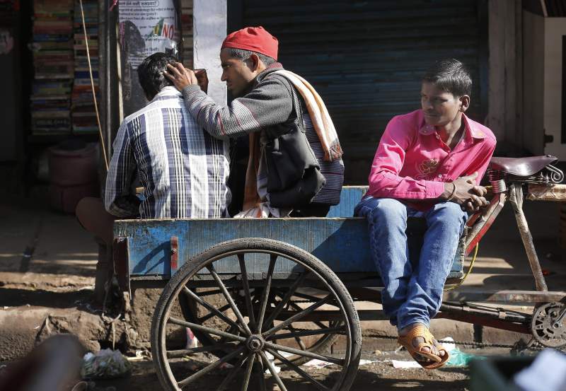Een Indiase oorschoonmaker was vandaag bezig met de oren van een klant, terwijl de volgende al zat te wachten op een schoonmaakbeurt. Er zijn in India nog enkele honderden �kaan-saaf-wallahs', zoals oorschoonmakers worden genoemd.
