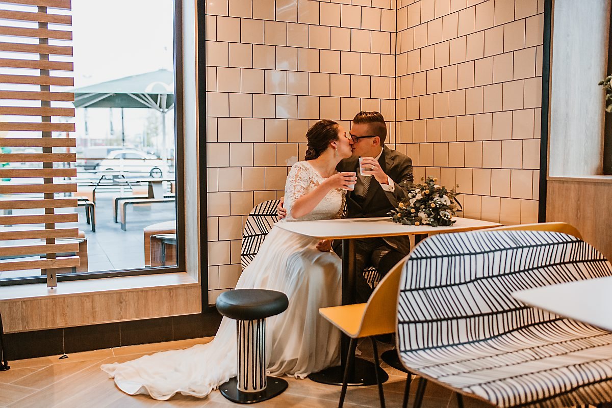 Het bruidspaar komt regelmatig bij de McDonald’s. Daarom vonden ze het een leuk idee om daar de dag te beginnen. Mart-Jan en Tanja gingen na de fotosessie door naar De Oude Duikenburg in Echteld.