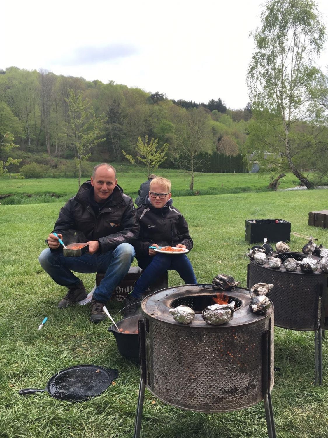 „Bij aankomst zagen we de plek waar we de tent mochten opbouwen. Samen dronken we koffie en thee. Van hout maakten we als vaders en zoons samen naambordjes. De twee helften vormden één geheel. Vervolgens gingen deze op een hoop. De jongens trokken een naambordje van een andere vader en praatte met hem over zijn zoon. Daarna deelden we dit in de groep.”