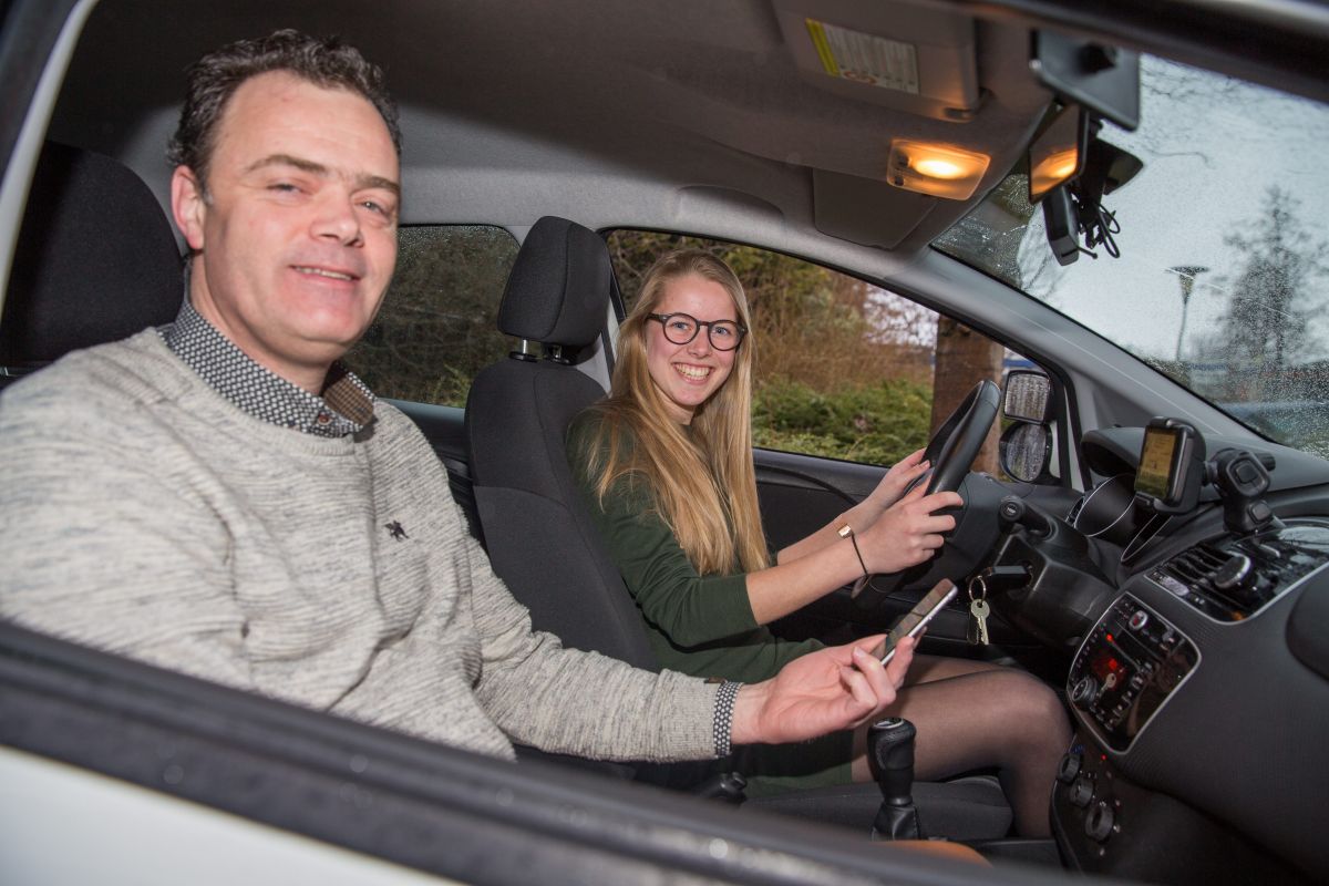 Met welk knopje maak ik de auto open, vraagt Myrthe Blonk (16) uit Boskoop rijinstructeur Nico van Wijngaarden terwijl ze de sleutel van de lesauto bestudeert. Het voertuig dat ze deze donderdagochtend bestuurt, bedient ze wat onwennig. Het is dan ook nog maar de vierde keer dat ze achter het stuur kruipt.
