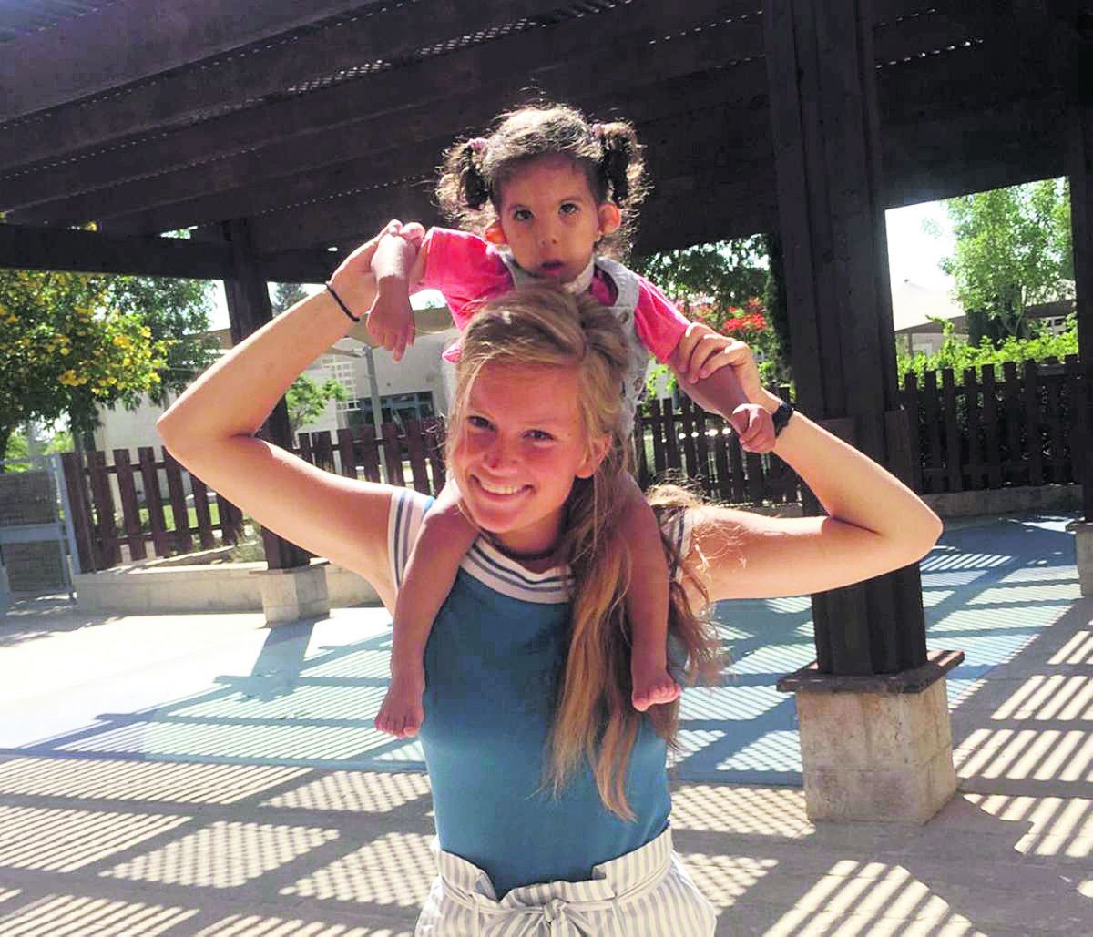„ALEH biedt hulp aan zwaar gehandicapte mensen”, vertelt Nadine, die zich zes weken inzet op een afdeling van het ziekenhuis van ALEH Negev. „De cliënten op de afdeling waar ik vrijwilligerswerk doe, zijn zo zwaar gehandicapt dat je je daar als buitenstaander bijna geen voorstelling van kunt maken. Ik had nog nooit zoiets gezien. Wij allemaal niet. Het is mooi om deze mensen persoonlijke aandacht te mogen geven, maar ook moeilijk.” Eerlijk bekent Nadine: „De eerste dagen heb ik wel wat traantjes gelaten, omdat ik het heftig vond om te zien hoe deze mensen eraan toe zijn.” Toch doet Nadine vol overgave haar werk. „De cliënten hebben veel hulp nodig en zijn zo kwetsbaar. Ik wil deze mensen alle liefde geven die ik in mij heb.”