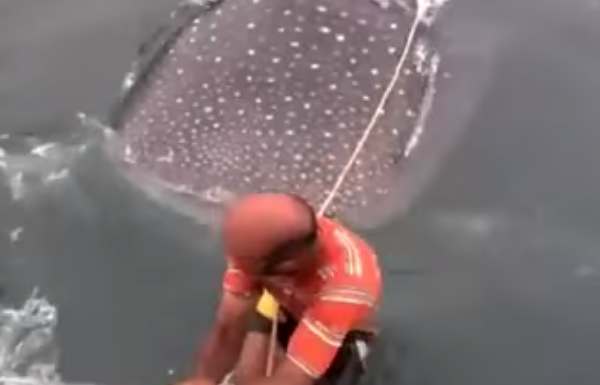 Op de videobeelden op YouTube is te zien hoe de twee surfen op de rug van een hamerhaai die is vastgebonden aan een boot. Daarbij worden aangemoedigd door andere opvarenden.