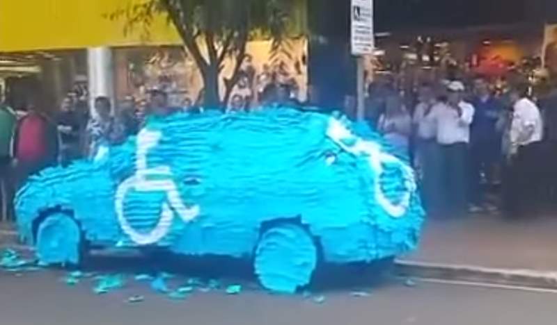 Nadat hij woensdag bij zijn auto was terugkeerd, zag hij dat zijn voertuig volledig was beplakt met blauwe post-its. Daardoor werd het symbool voor een invalidenparkeerplaats levensgroot zichtbaar op zijn auto.