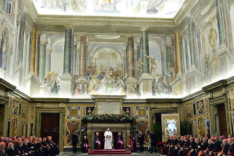 Paus Franciscus, die vanwege griep zittend sprak, waarschuwde: „Het is nodig om aan te geven wat altijd het doel is van oprechte kritiek en beslissende maatregelen. De hervorming zal vastberaden, duidelijk en met daadkracht doorgaan, want ”ecclesia semper reformanda” – de kerk moet zich blijven hervormen.”
