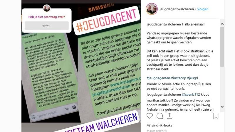 Als de leerlingen niet uit de groepsapp stappen, kunnen ze bezoek van de agenten verwachten. "Dit kan echt niet! Het is ook strafbaar", schrijven de agenten op Instagram. "Met het aanzetten en uitlokken tot geweld gaan jullie een behoorlijke grens over. Dit is strafbaar en als politie tolereren wij dit niet."