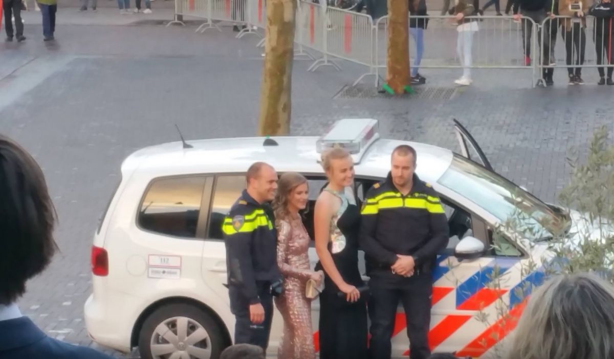De wagen van een aantal leerlingen weigerde dienst op het moment suprême. Om te voorkomen dat de scholieren te laat kwamen op de rode loper, mochten ze in de politieauto stappen.