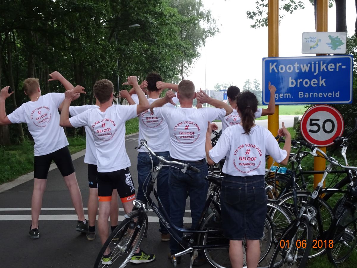 De vier 18-jarige leden van jeugdvereniging Obadja van de gereformeerde gemeente in Krabbendijke fietsten de tocht anderhalve week geleden. 's Morgens om 06.00 stapten ze op de fiets, rond 19.00 kwamen ze aan in Kootwijkerbroek. Enkele begeleiders legden 50 tot 125 kilometer af.