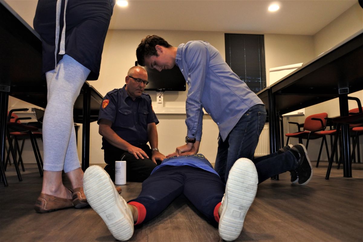 Aan het einde van de avond mochten de bezoekers op een oefenpop zelf ervaren hoe reanimeren in z’n werk gaat.