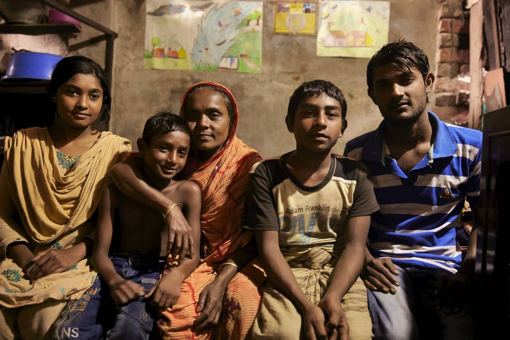 Tumpa’s moeder Amiton (45), is weduwe. Ze staat er met haar vier kinderen alleen voor om dagelijks aan eten te komen. Eigenlijk is Tumpa’s oudste broer, Razu (rechts op de foto), nu kostwinner. Met zijn riksja peddelt hij dagelijks door de stad, op zoek naar passagiers. En moeder verdient wat mee als wegarbeidster.