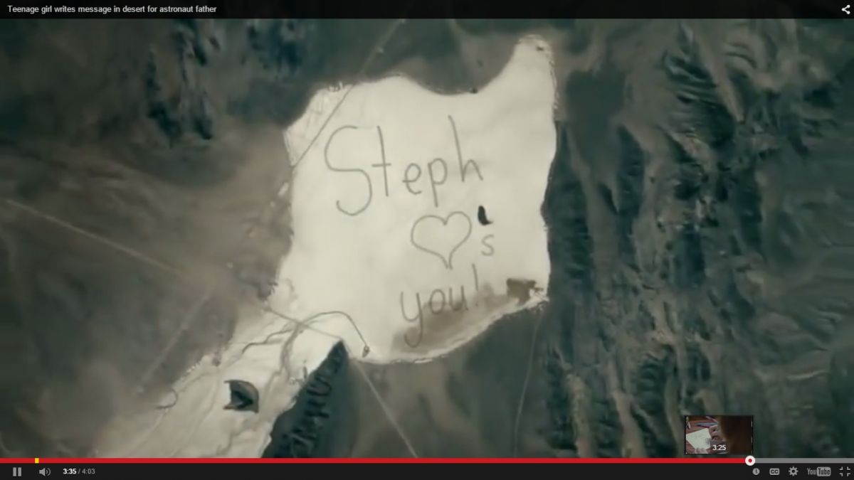 Maar liefst 11 auto's 'schreven' voor de 13-jarige Stephanie uit Houstan het 5.500.000 vierkante meter grote bericht Steph loves you in woestijnzand.