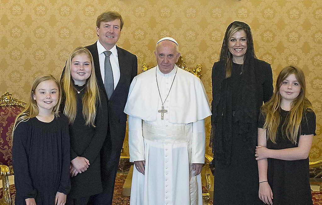 Ze kwamen met een gevolg, inclusief prins Jaime die voor Nederland ambassadeur is bij de Heilige Stoel. De prinsesjes Amalia, Alexia en Ariane zijn bij hun ouders voor vakantie in de Italiaanse hoofdstad.