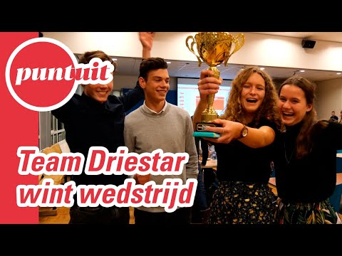 Amber Haasnoot en Alise van Duijvenbode trappen af. Hun werkstuk gaat over dementie.