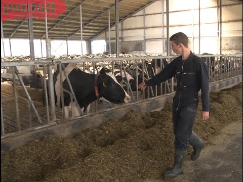 Nieuwsgierig komt koe 41 bij de melkrobot kijken. Is-ie al schoon? lijkt ze te vragen. Leon van Dijke (16) uit Poortvliet laat zich echter niet opjagen. De schoonmaakbeurt moet vandaag echt goed gebeuren, want het gaat om zijn diploma.