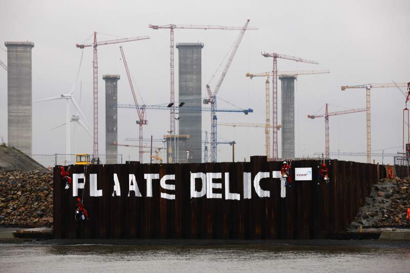 De milieu-activisten begonnen hun actie dinsdagavond rond half acht. Klimmers van de actiegroep hingen tussen drie hijskranen een speciale tent op. Elf actievoerders brachten daar volgens Greenpeace al hangend op ongeveer 70 meter hoogte de nacht door.