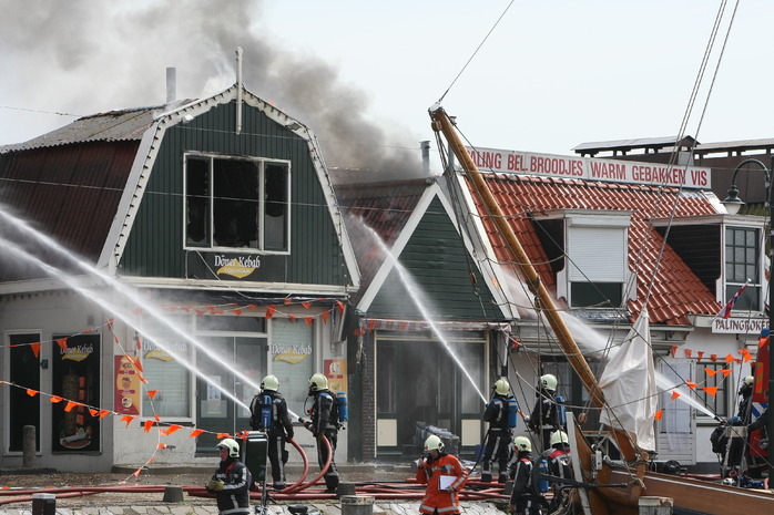 De brand is zoals het er nu naar uitziet ontstaan in een souvenirwinkel. De oorzaak van de brand is nog onduidelijk. Over de schade kon burgemeester Van Beek van de gemeente Edam-Volendam nog niets zeggen. Niemand raakte gewond, al moesten wel twee mensen ter plekke worden behandeld omdat ze rook hadden ingeademd.