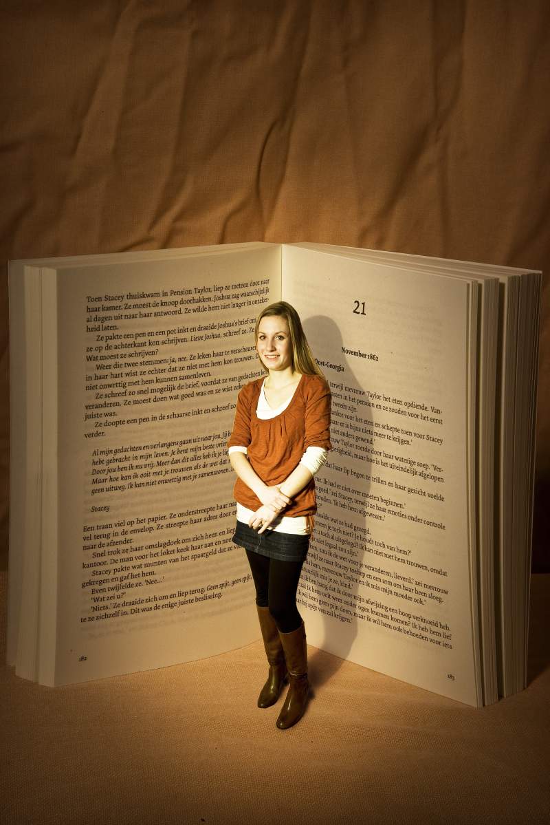 Eline: „Ik ben op mijn dertiende begonnen aan een verhaal over de Amerikaanse burgeroorlog. Het onderwerp interesseerde me. Ik had ineens een scherp beeld voor ogen van mijn hoofdpersoon: een meisje met veel sproeten, een lichte huid, donker haar, groene ogen. Het leek net of ze echt was."