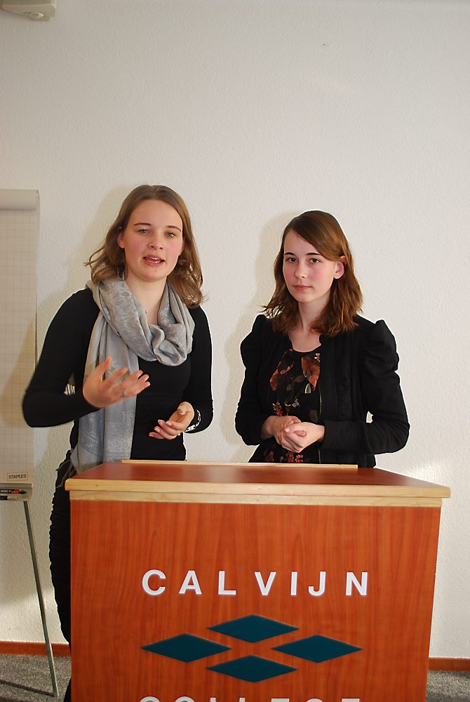 De meiden uit vwo 6 van het Calvijn College in Goes zitten in een parallelklas. Toch werken ze samen aan een profielwerkstuk (pws). Ze kennen elkaar via de actieve debatclub van de school. Met hun voorliefde voor discussie kozen de dames dan ook ”Debatteren” als onderwerp van hun profielwerkstuk.