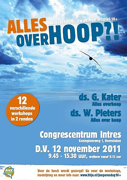 Er zijn zaterdagmorgen twee lezingen, die worden verzorgd door ds. G. Kater (Alles overhoop) en ds. W. Pieters (Alles over hoop). ’s Middags zijn er verschillende workshops.
