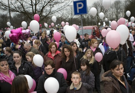 Veel aanwezigen houden roze of witte ballonnen vast en hebben een roze lintje om. Roze was de lievelingskleur van het 12–jarige meisje. Ook haar zus en broer hebben zich bij de menigte gevoegd. De ouders twijfelen nog of ze zullen meelopen.