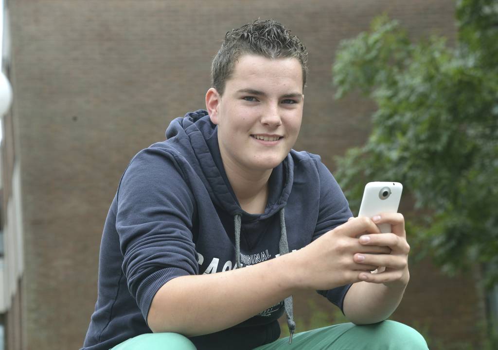 „Absoluut niet. Ik ben niet iemand die tot drie uur ’s nachts ligt te sms’en. Tijdens de lessen op het Calvijn College in Goes mag ik de telefoon sowieso niet gebruiken, en thuis onder het eten en op mijn werk in de supermarkt ook niet. Dan blijft er niet heel veel tijd over.”