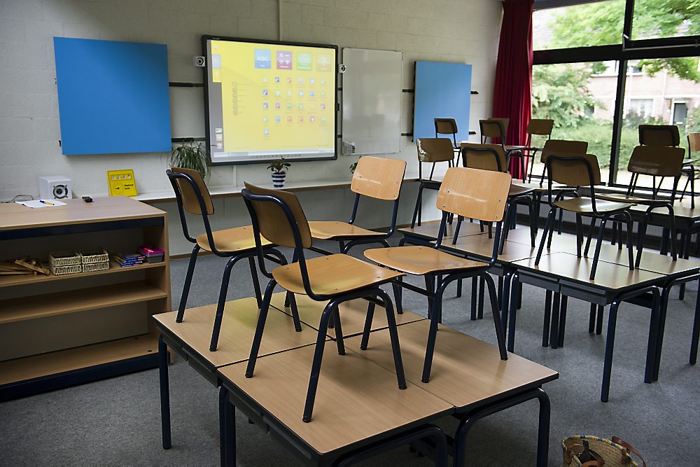 De directie van de school had ouders opgeroepen maandag hun kinderen thuis te houden. Veel ouders hebben onderling een oplossing gezocht, aldus een woordvoerster van de gemeente. Gezocht wordt nu naar vervangende klasruimte voor na maandag.