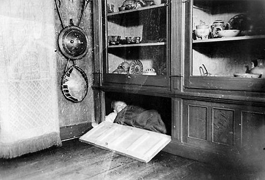 Dat gebeurde toen ze in de werkruimte achter de winkel oude latten en glasplaten weghaalde. Ze merkten dat er beweging in de muur zat. „Toen ik aan het behang trok, zag ik een sleutelgat. Vervolgens kwam ik in een bedstee waar oude kranten lagen, linnen en een oude jas. Die jas heb ik weggegooid. Ik besefte eerst niet wat het was”, vertelt Coby van der Haring.