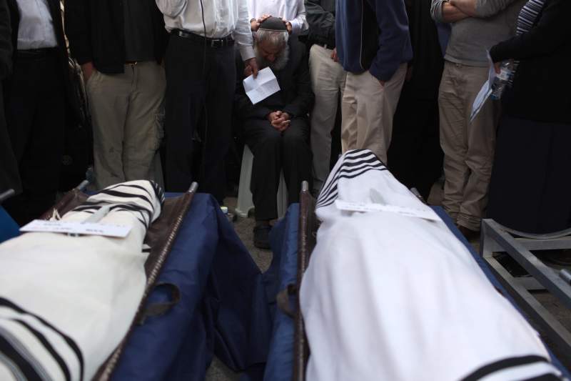 Afgelopen vrijdag werden een vader en moeder en drie kinderen met messteken om het leven gebracht. De politie denkt dat de dader een Palestijn is. Het is onduidelijk of hij alleen heeft gehandeld.