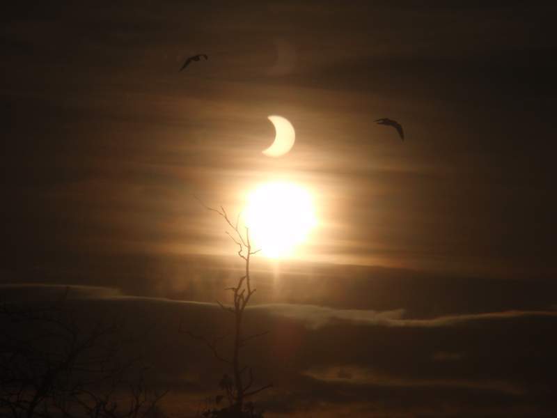Bij zonsopkomst rond 8.48 uur was de zon voor driekwart verduisterd. Omdat het nieuwe maan is, bewoog de maan vanaf de aarde gezien bijna precies voor de zon langs. Twee uur later, rond tien over half elf, was de verduistering afgelopen.