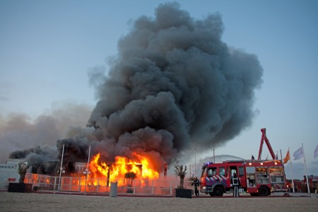 De brandweer laat de paviljoens gecontroleerd afbranden. Het gaat om de Waterskihut en de drie aangrenzende paviljoens. De eigenaren zijn op de hoogte gebracht.