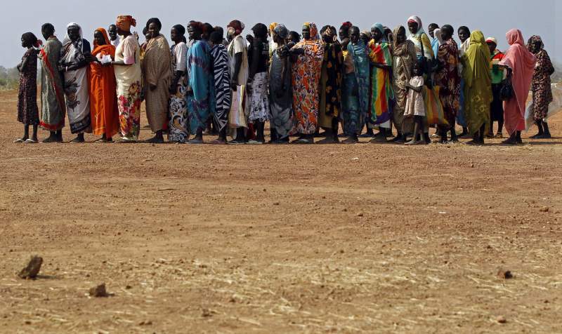 In de rij voor het eten is elders in de wereld een verschijnsel dat zich niet alleen rond de Kerst of op de late zaterdagochtenden voordoet. Sudanezen die vanuit het noorden terugkeerden naar het zuiden van het land sloten zich woensdag aan in de rij voor het rantsoen van het Wereldvoedselprogramma.