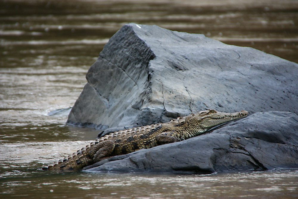De 65-jarige Australiër verbleef in een vissershut aan de rivier toen het water begon te stijgen. De vier meter lange reptielen omsingelden het verblijf en maakten geen aanstalten om te vertrekken.
