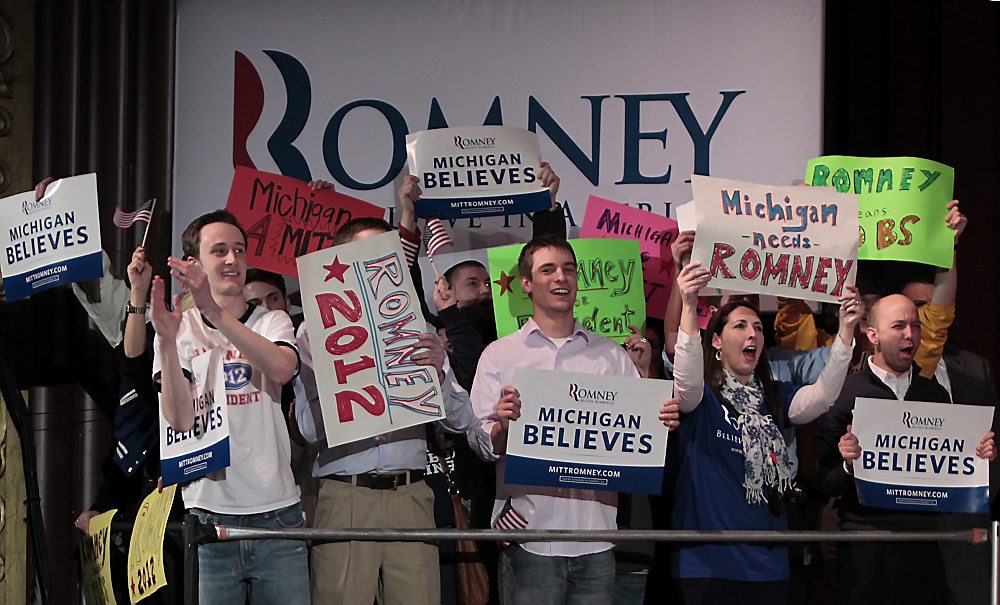 „Wow! Wat een nacht!”, zei een zichtbaar opgeluchte Romney tegen aanhangers in Novi, Michigan. „We hebben niet ruim gewonnen, maar de winst was voldoende. Dat is het enige dat telt.” De mormoon Romney kreeg 41 procent van de kiezers achter zich in Michigan, terwijl Santorum hem op de hielen zat met 38 procent.