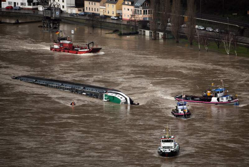 De 100 meter lange tanker van een Duitse rederij was op weg met zwavelzuur van het Duitse chemieconcern BASF naar het Belgische Antwerpen. De brandweerdienst van BASF ondersteunt lokale reddingsdiensten, meldden Duitse media.