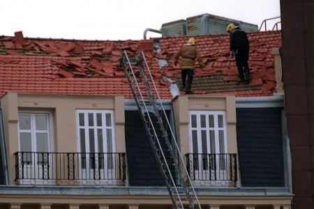 Ook gebouwen liepen hier en daar averij op door de storm. In Meise, bij Brussel, moest een bejaardentehuis worden ontruimd wegens schade aan het dak.