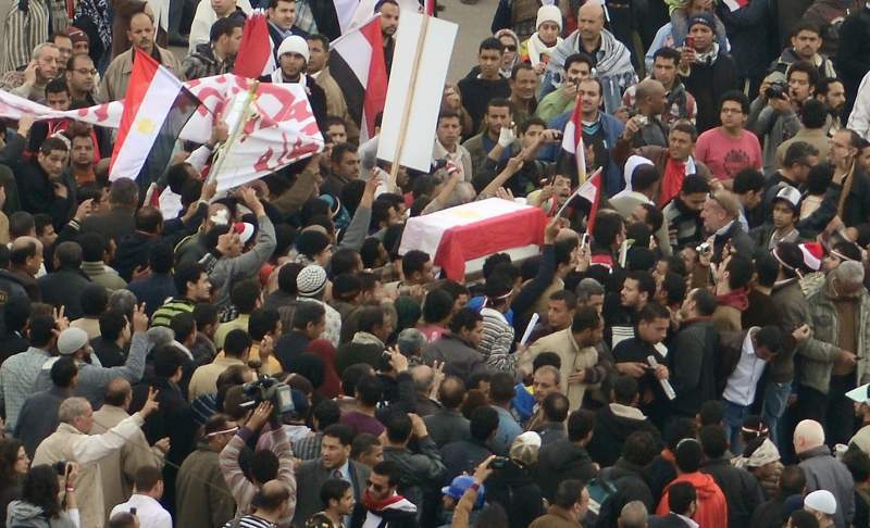 De echtelieden en hun families besloten het huwelijk ter plaatse te laten inzegenen en niet weg te gaan uit dit epicentrum van protesten in Egypte. Ze werden door duizenden toegejuicht en gelukgewenst.