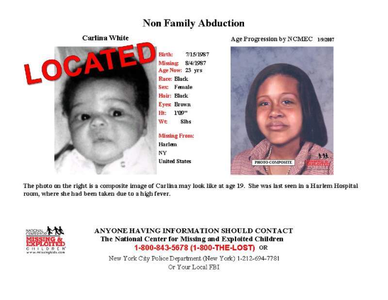 Carlina nam contact op met het Nationale Centrum voor Vermiste en Uitgebuite kinderen. Op de website ontdekte ze een foto van een baby, waarvan ze dacht dat zij dat zelf wel eens zou kunnen zijn.