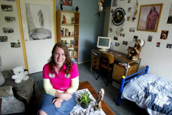 Ik gebruik mijn kamer om: „Huiswerk te maken. Ook lees ik veel. Ik houd ervan om mezelf op m’n kamer terug te trekken. Lekker mezelf zijn tussen de indiaantjes. Dan zet ik een cd met indiaanse volksmuziek op. Dat werkt echt ontspannend. Er staan ook een grote stoel en houten tafel in m’n kamer. Dat is handig voor als m’n vriendinnen komen. En het maakt de kamer wat huiselijker.”