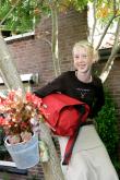 Aanschaf: „Ongeveer anderhalf jaar geleden heb ik de tas samen met mijn moeder gekocht. Daarvoor had ik een blauwe tas. Ik weet eerlijk gezegd niet meer waarom ik die leuk vond. Deze rode vind ik veel leuker. Mijn moeder heeft de tas betaald. Hoeveel? Tussen de 15 en de 20 euro. Dat is volgens mij niet duur voor zo’n tas.”