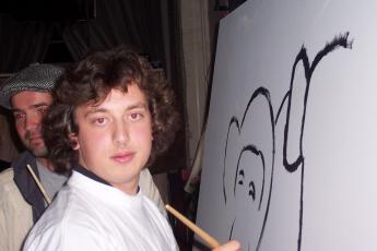 De 20-jarige jongen met een verstandelijke handicap mag kunstenaar Marc Faassen helpen een schilderij te maken. Ruben: „Ik schilder een olifant. Dat vind ik een mooi dier.” Het schilderij wordt volgens Marc verkocht aan de hoogste bieder. „De collectebussen kunnen we na afloop van de collecteweek ook wel bij opbod verkopen.”
