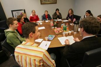 Het Landelijk Aktie Komitee Scholieren organiseerde deze week een studiedag over manieren waarop de leerlingen beter bij school kunnen worden betrokken. Op het Wartburg College komt elke maand de leerlingenraad bijeen voor overleg met de directeur. Gisterochtend tijdens het derde lesuur was het weer zover.