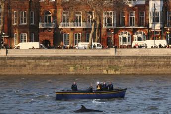 LONDEN - De noordelijke butskop die vrijdag werd gesignaleerd in de rivier de Theems in Londen is zaterdag bezweken tijdens de reddingsoperatie die in gang was gezet om het dier naar open zee te krijgen.