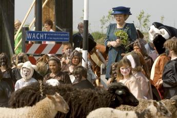 Verkleed als vleermuizen namen zij in Hilversum een natuurbrug in gebruik die de vorstin even daarvoor had geopend. „Ze vroeg welke dieren wij waren, want dat was best lastig te zien.”