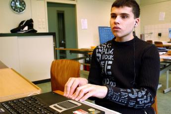Vmbo’er Serhat Memis (16) zat deze week met oordoppen in zijn oren achter een spraakcomputer met een brailleleesregel. Na zijn geboorte bleek dat Serhat slechts met één oog kon zien. Op 10-jarige leeftijd liet het netvlies van zijn goede oog los. Sindsdien ziet Serhat slechts schaduwen en verblijft hij doordeweeks in blindeninstituut Bartimeús in Zeist.